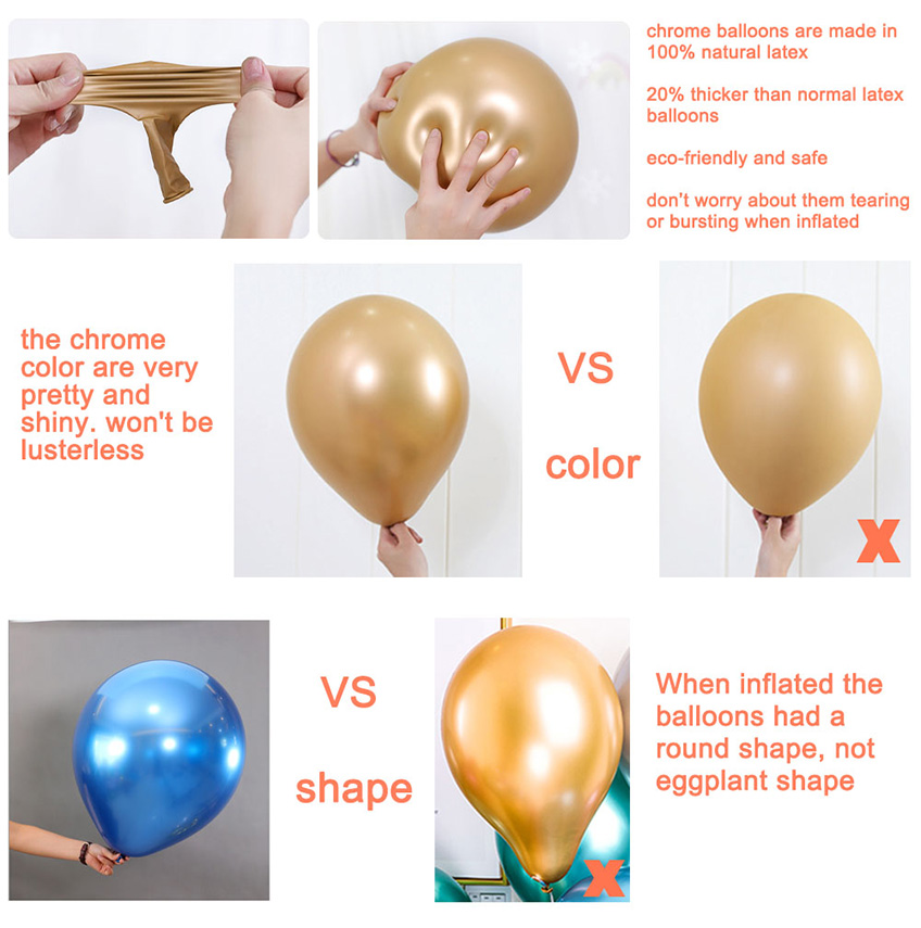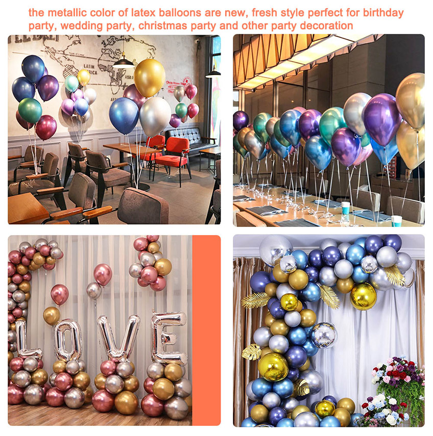 El color metálico de los globos de látex es un estilo nuevo y fresco, perfecto para fiestas de cumpleaños, bodas, fiestas de Navidad y otras decoraciones para fiestas.